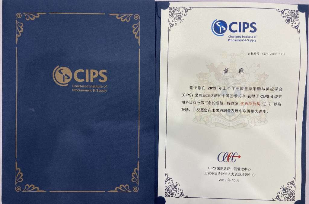 总部已制发优秀学员证书,和CIPS认证证书一起发放。本机构也将给获得优秀学员的学员,“CIPS学习金1000元奖励” 向取得优异成绩的三位同学祝贺! 也向所有取得理想成绩,努力奋进的学员致敬 奋进的路上,没有一蹴而就。 唯有砥砺前行。 以下为CIPS中国总部发布的奖项名单: 优秀学员奖 ——